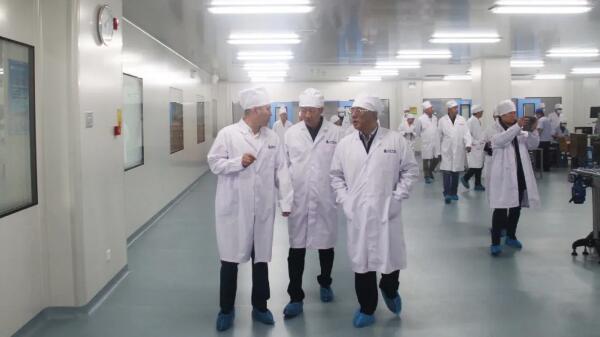調(diào)研組一行參觀了公司綜合制劑二車間,公司總經(jīng)理席桂才介紹了企業(yè)的基本情況。在產(chǎn)品展示區(qū),調(diào)研組詢問了公司主打產(chǎn)品功效、新產(chǎn)品研發(fā)及產(chǎn)品總體布局情況。在車間生產(chǎn)線,調(diào)研組了解了生產(chǎn)線操作流程及現(xiàn)代化設備功能。